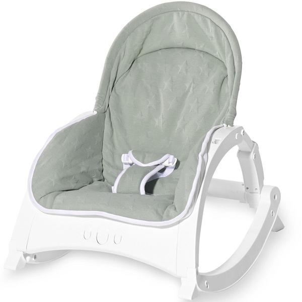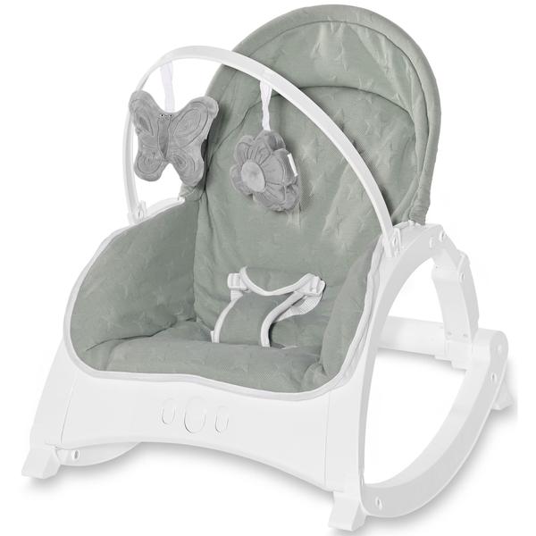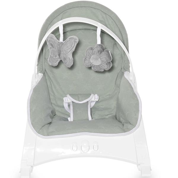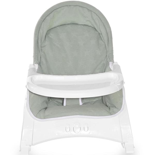 Fotoliu balansoar Lorelli Alex Frosty Green Stars, cu masuta, vibratii si muzica, Verde