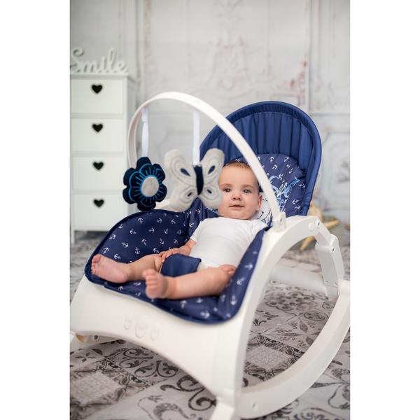 - Prevazut cu: arcada cu doua jucarii din plus, detasabila; utila cand produsul este folosit ca leagan; tavita pentru joaca sau servit masa, detasabila; utila cand produsul este folosit ca fotoliu;