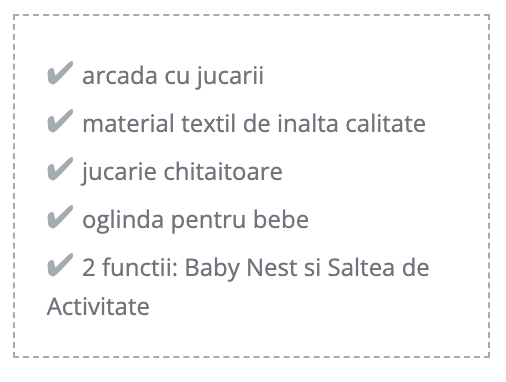 ♦ are 2 functii, putand fi folosita atat ca Baby Nest cat si ca Salteluta de Activitate