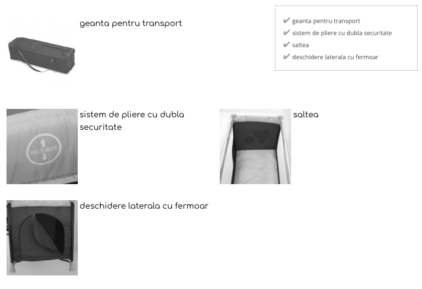 ♦ geanta de transport inclusa, la pliere patutul are dimensiuni foarte reduse.