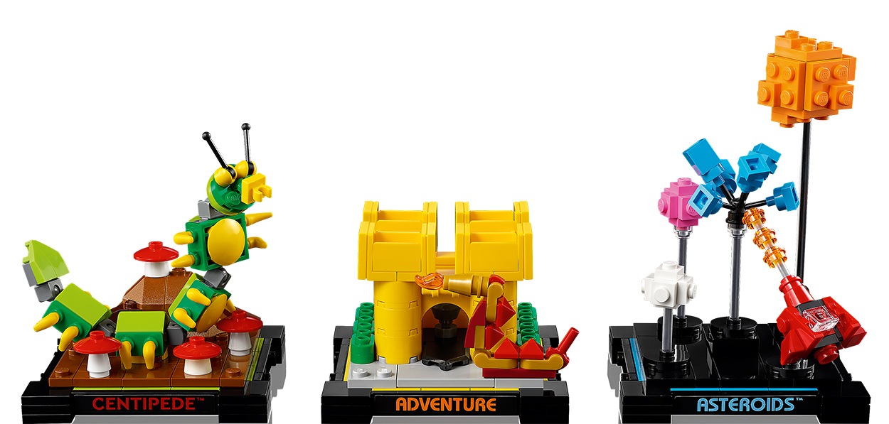 Redescopera 3 dintre cele mai populare jocuri Atari: Asteroids, Adventure si Centipede. Exista o replica de „caseta” pentru fiecare, precum si 3 scene de construit care sa surprinda povestea fiecarui joc. Jocurile se introduc in consola vintage si pot fi depozitate in suportul pentru casete. Admira detaliile grafice, inspirate de modelele originale Atari, dar purtand amprenta spiritului LEGO.
