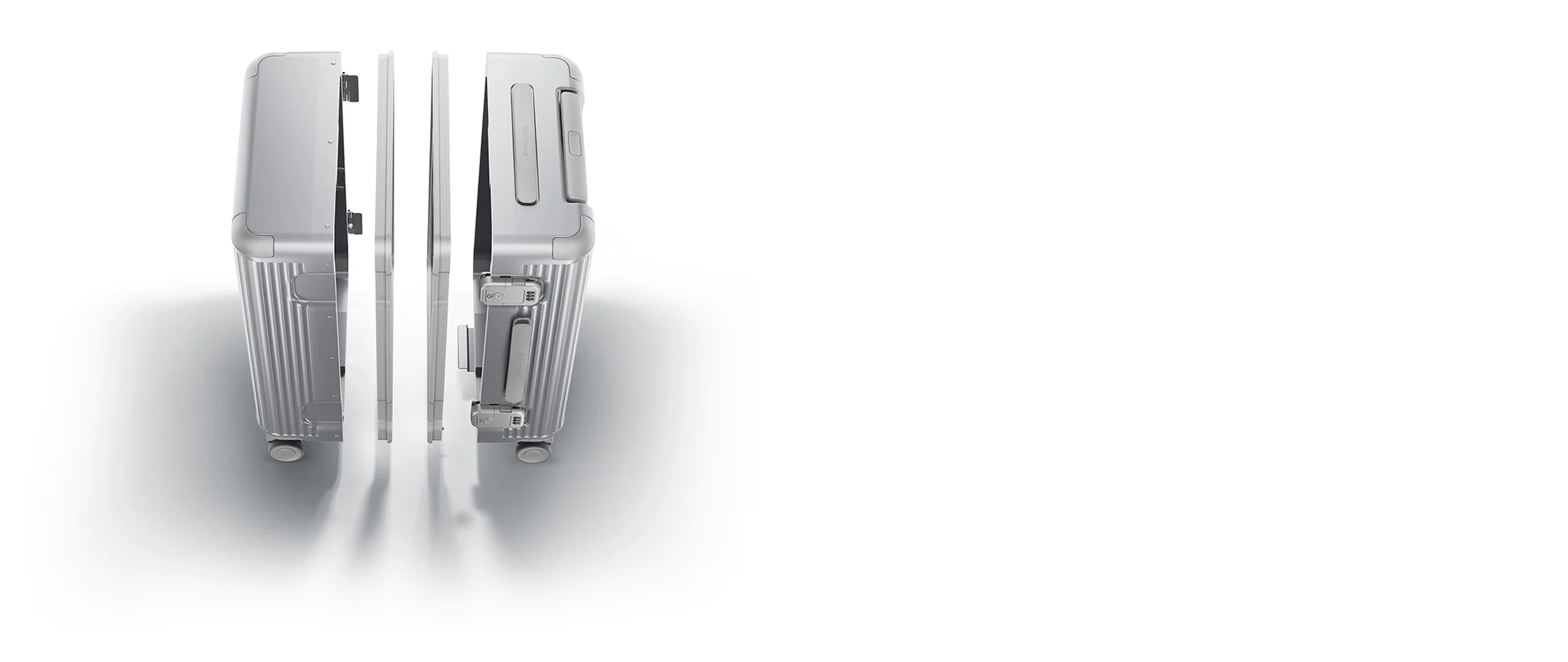 Designul clasic cu nervuri a fost reînnoit, încorporând o acoperire cu pulbere metalică. Pe măsură ce lumina se reflectă pe suprafața sa, textura valizei dezvăluie o experiență vizuală captivantă, făcând-o să iasă în evidență cu un aspect uimitor și atrăgător.