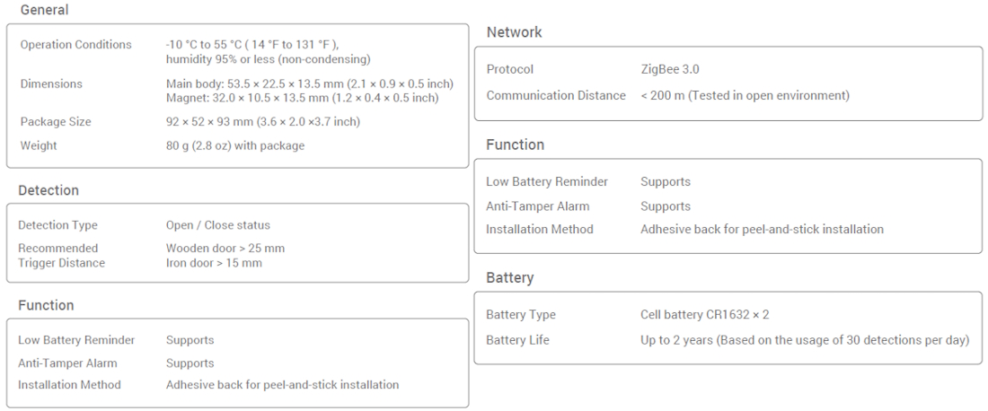 – Necesita utilizarea cu EZVIZ Home Gateway A3 – distanta detectie: pana in 200 m (mediu deschis); functioneaza numai cu kit-ul senzor EZVIZ