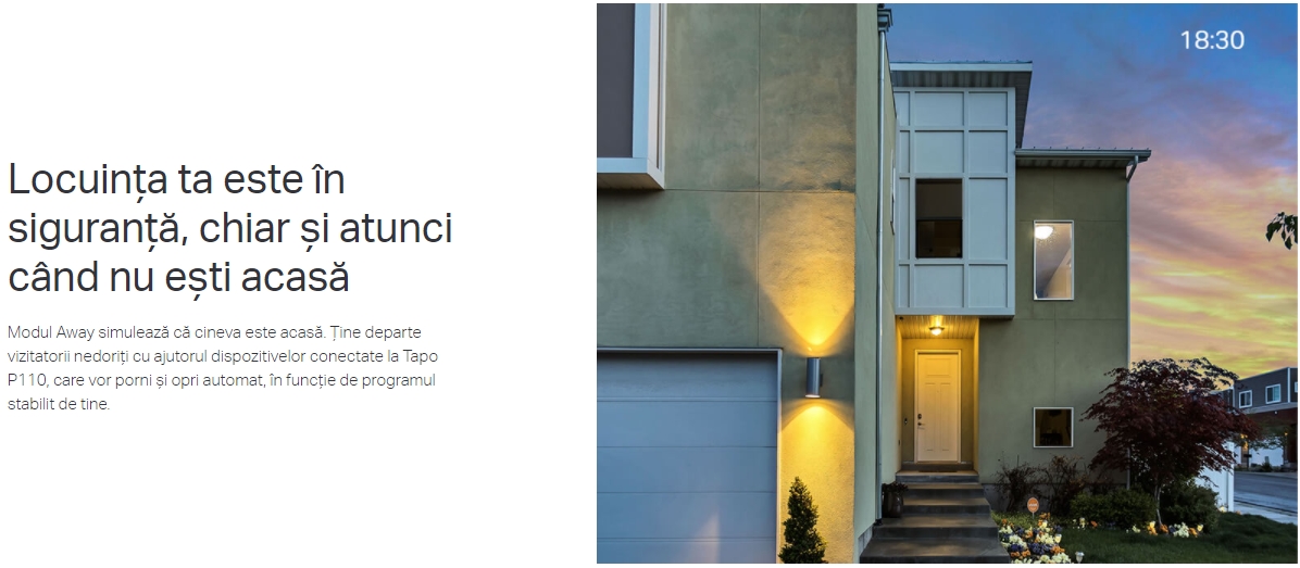 - Modul Away – Pornește/oprește automat dispozitivele, în intervale de timp diferite, pentru a da senzația că cineva este acasă