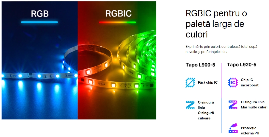 Descrierea produsului Banda LED TP-Link Tapo L920-5, 13.5 W, Wi-Fi, multicolora inteligenta