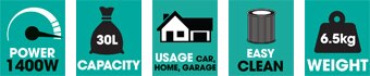 • Rezervorul mare de 30 L, acoperit cu crom, asigura un spatiu optim de depozitare a materialului aspirat