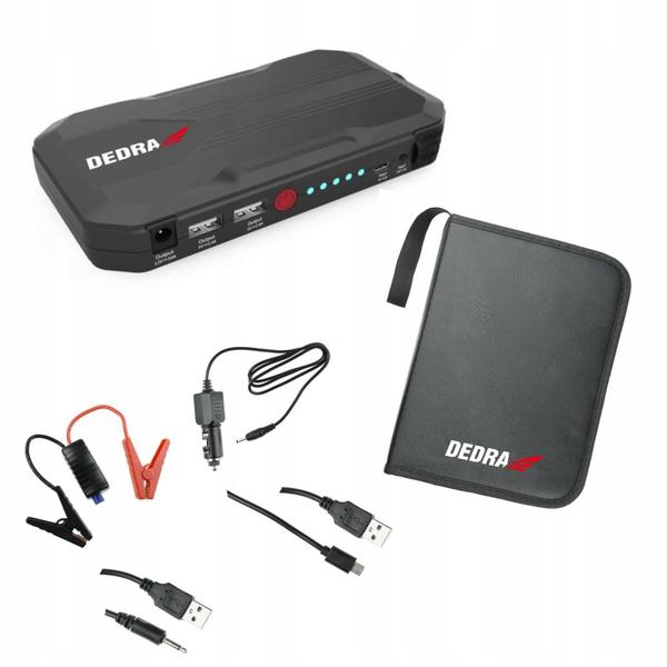 Powerbank-ul cu functia de pornire a motorului este un dispozitiv unic, cu doua functii. Poate fi folosit ca un powerbank obisnuit, clasic pentru a incarca un smartphone, tableta sau difuzor bluetooth, dar si pentru a porni motorul unei masini daca este necesar. Powerbank-ul DEDRA cu functia de pornire a motorului nu este un gadget, este un instrument necesar in diminetile geroase de iarna. Priza de incarcare rapida incorporata va permite sa va reincarcati rapid telefonul fara a fi nevoie sa conectati dispozitivul pentru o perioada lunga de timp.