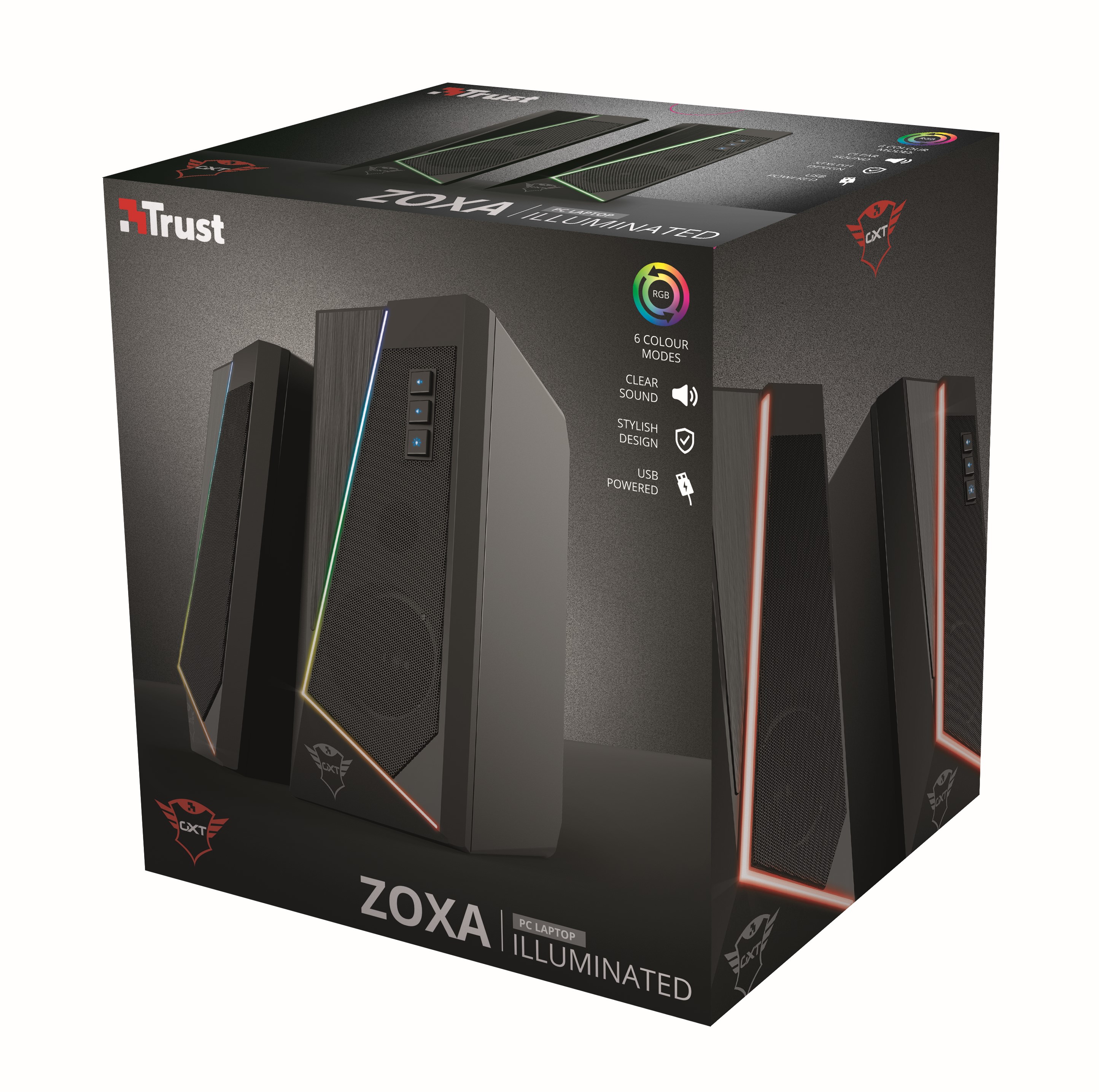 Cu un design elegant si o iluminare RGB subtila, Trust GXT 609 Zoxa este un plus elegant pentru orice birou. In plus, acest set de difuzoare stereo este usor de utilizat si nici macar nu are nevoie de o priza de perete. Se pornesc automat la pornirea computerului.