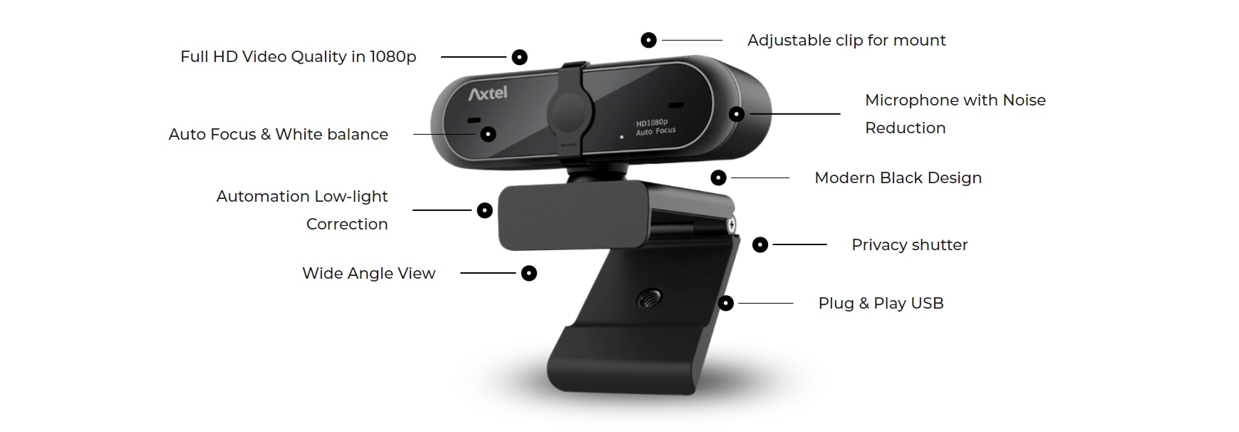 Descrierea produsului Webcam Axtel Full HD 1080p, Autofocus & White Balance, Privacy Shutter, USB