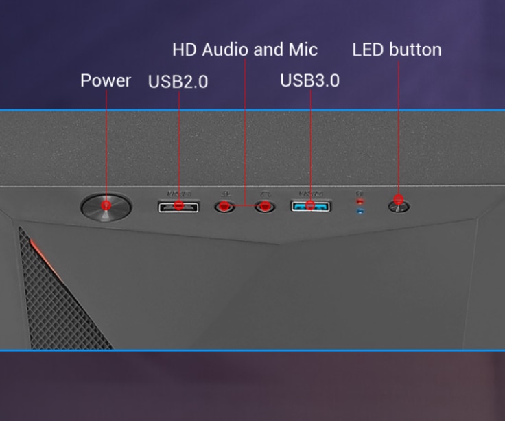 ACCES CONVENABIL LA MEDIILE DVS. Acces rapid si usor la butonul de control LED, 1 x USB3.0, 1 x USB2.0, porturile audio HD si microfon si la butonul de alimentare. |