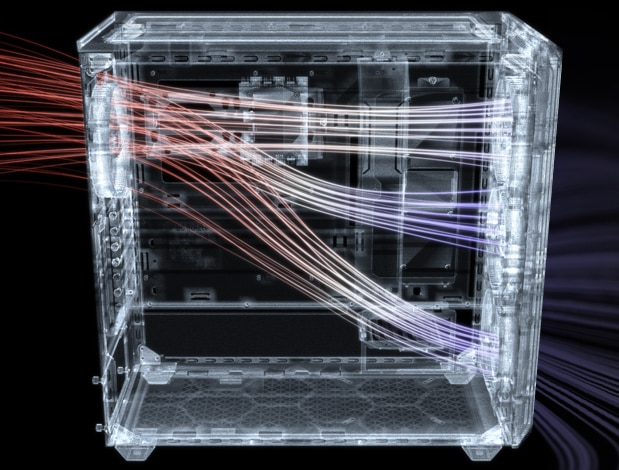 Managementul profesional al cablurilor Indiferent de dimensiunea sau de numarul de componente incorporate in Shadow Base 800 FX Black, cu ajutorul barelor de cabluri inteligent integrate puteti evita cu usurinta dezordinea enervanta. Acest lucru are ca rezultat un interior curat. |