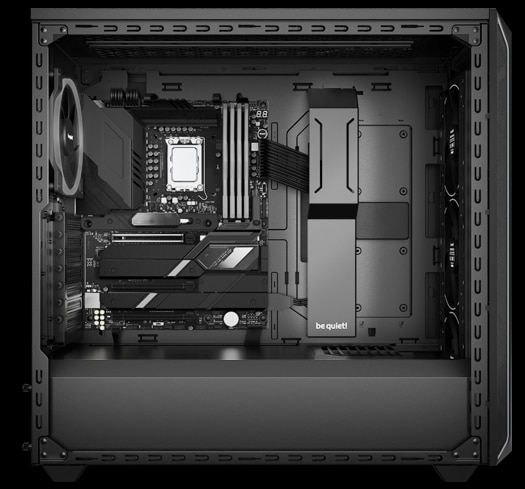 DIMENSIUNEA CONTEAZA Dimensiuni generoase pentru radiatoare de pana la 420 mm Cu dimensiunile sale remarcabil de mari, Shadow Base 800 FX Black nu impune limite in ceea ce priveste creativitatea. Poate gazdui radiatoare de pana la 420 mm, placi de baza E-ATX si chiar si cele mai mari placi grafice. |