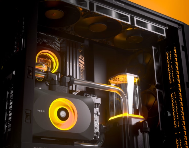 PLACI GRAFICE FARA CADERE Fiecare CORSAIR FRAME 4000D include un brat de stabilizare GPU Anti-sag pentru a mentine GPU-ul stabil, astfel incat sa nu trebuiasca sa va faceti griji cu privire la deteriorarea slotului PCIe. |