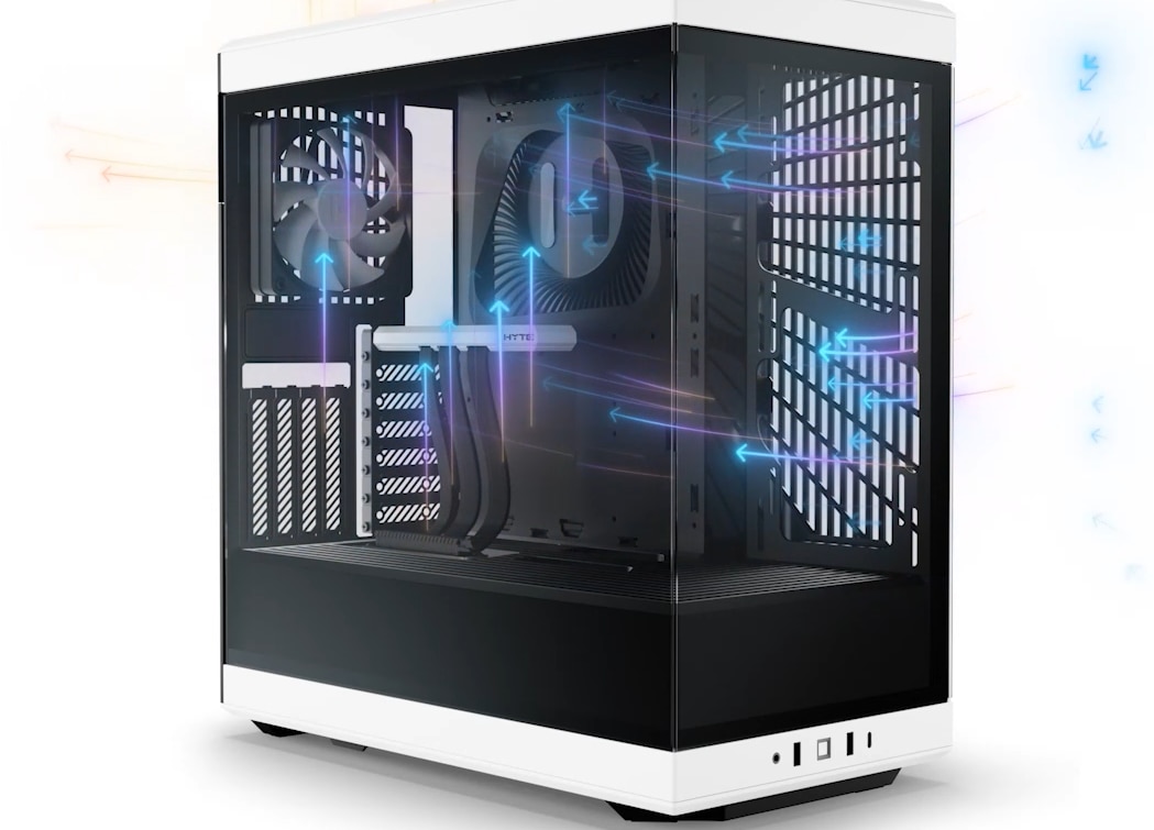Configuratia optima a fluxului de aer Cu experienta acumulata in urma testelor si a constructiei si testarii fluxului de aer optim, Y40 obtine in mod natural o configuratie foarte buna a fluxului de aer. Fluxul de aer optim pentru placi video *racite cu aer* este urmatorul: