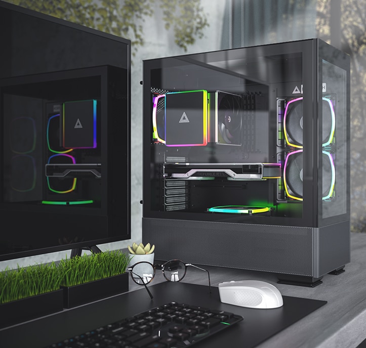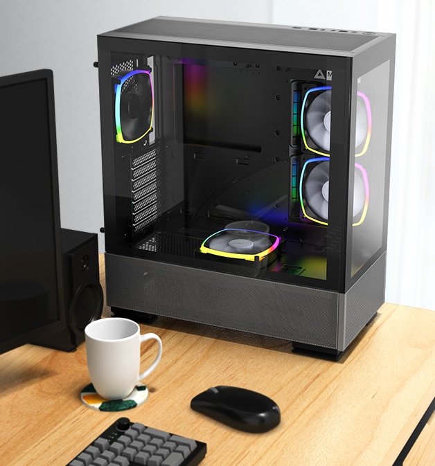 Panourile frontale si laterale integrate, plasa fina care acopera intregul fund al turnului si ventilatoarele preinstalate de inalta eficienta, combina utilitatea si eleganta care se potrivesc cu valoarea noastra de baza a designului, indeplinesc, de asemenea, toate dorinta utilizatorilor. conteaza daca este pentru performanta sau aspect. |