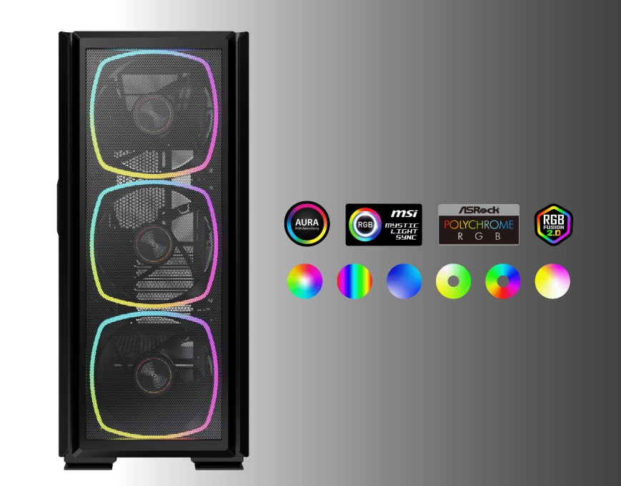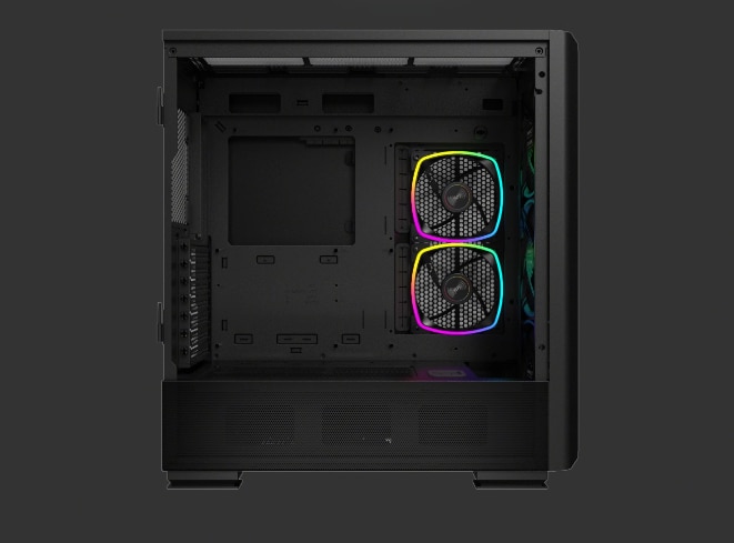 3 x ventilatoare AX140 ARGB de inalta performanta SKY TWO GX este echipat cu 3x ventilatoare PWM AX140 ARGB in partea frontala, asigurand un amestec de flux de aer ridicat si niveluri scazute de zgomot. Viteza ventilatorului este reglabila prin functia PWM, permitand sincronizarea cu placa de baza pentru un afisaj de iluminare personalizat. |