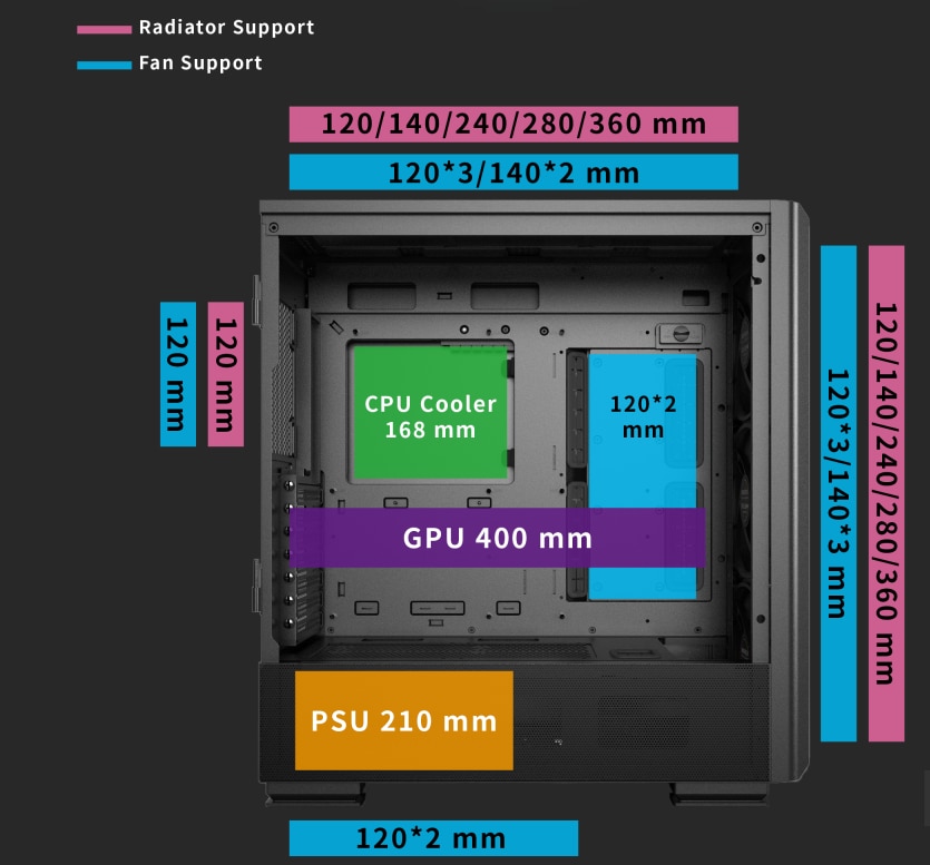 | Radiator Support | Top | 360/280/240/140/120mm |