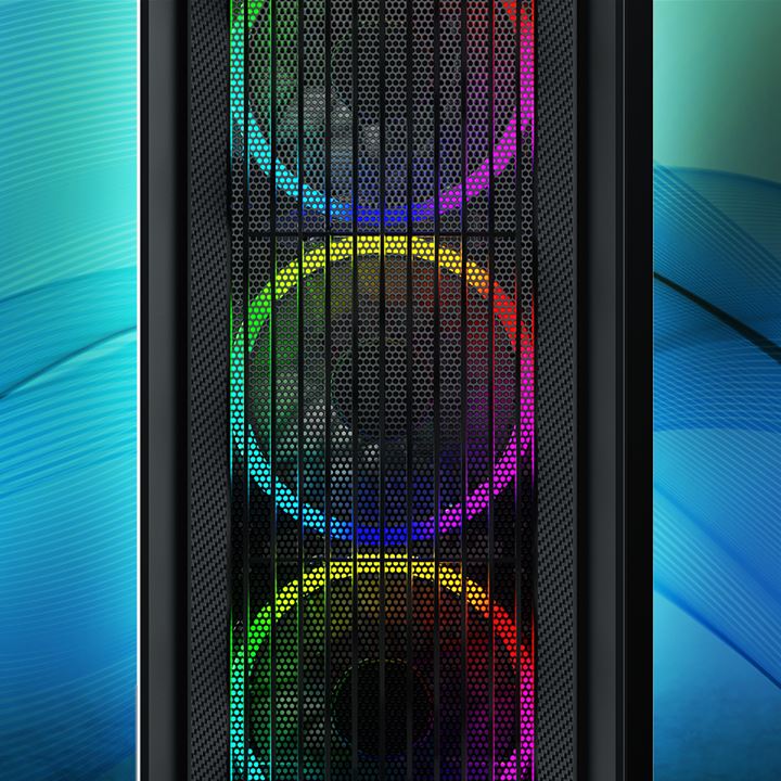 Intotdeauna rece in interior In RGB Wave, totul este deja pregatit pentru a face posibila o ventilatie de racire. In plus fata de un panou frontal care permite aerului sa patrunda cu usurinta in carcasa, patru ventilatoare RGB de 120 mm sunt deja preinstalate pentru o racire imediata: Trei in partea din fata si unul in spatele carcasei. Pentru a spori si mai mult fluxul de aer, partea superioara a carcasei ofera o locatie optionala pentru doua ventilatoare suplimentare cu un diametru de 120 mm sau 140 mm. Daca este necesar, un ventilator de 120 mm poate fi, de asemenea, instalat in partea superioara a tunelului de alimentare. Filtrele de praf incorporate pot fi indepartate cu usurinta si eliberate de praful colectat, astfel incat totul in interior sa ramana frumos si curat. | ![]() |