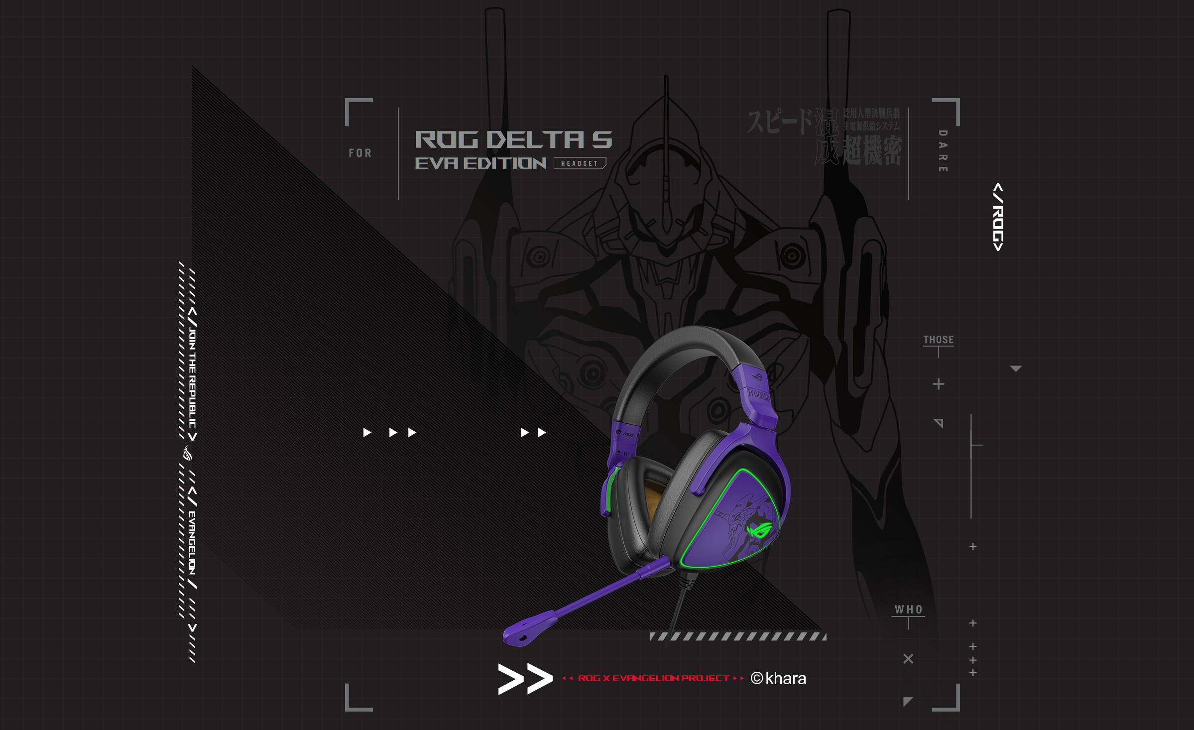 Suntem in anul 2022. Republica Gamerilor lanseaza un nou echipament pentru proiectul EVANGELION. Castile ROG Delta S EVA Edition inglobeaza un ESS 9281 QUAD DAC™ de inalta fidelitate si un microfon ASUS AI Noise-Canceling intr-o carcasa usoara care prezinta o estetica violet si verde inspirata de EVA si iluminare RGB personalizabila. Pachetul total cantareste doar 300 de grame, punand confortul pe picior de egalitate cu sunetele de impact si comunicatiile impecabile.