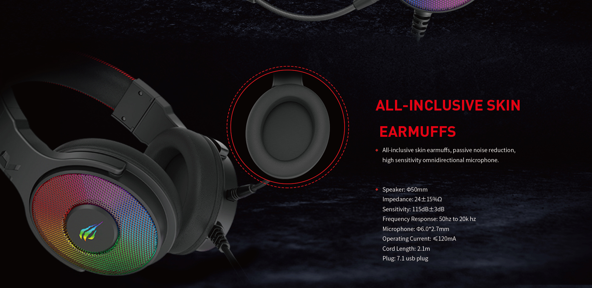 Descrierea produsului Casti Gaming Havit H2028U, microfon, iluminare RGB, USB (Negru)