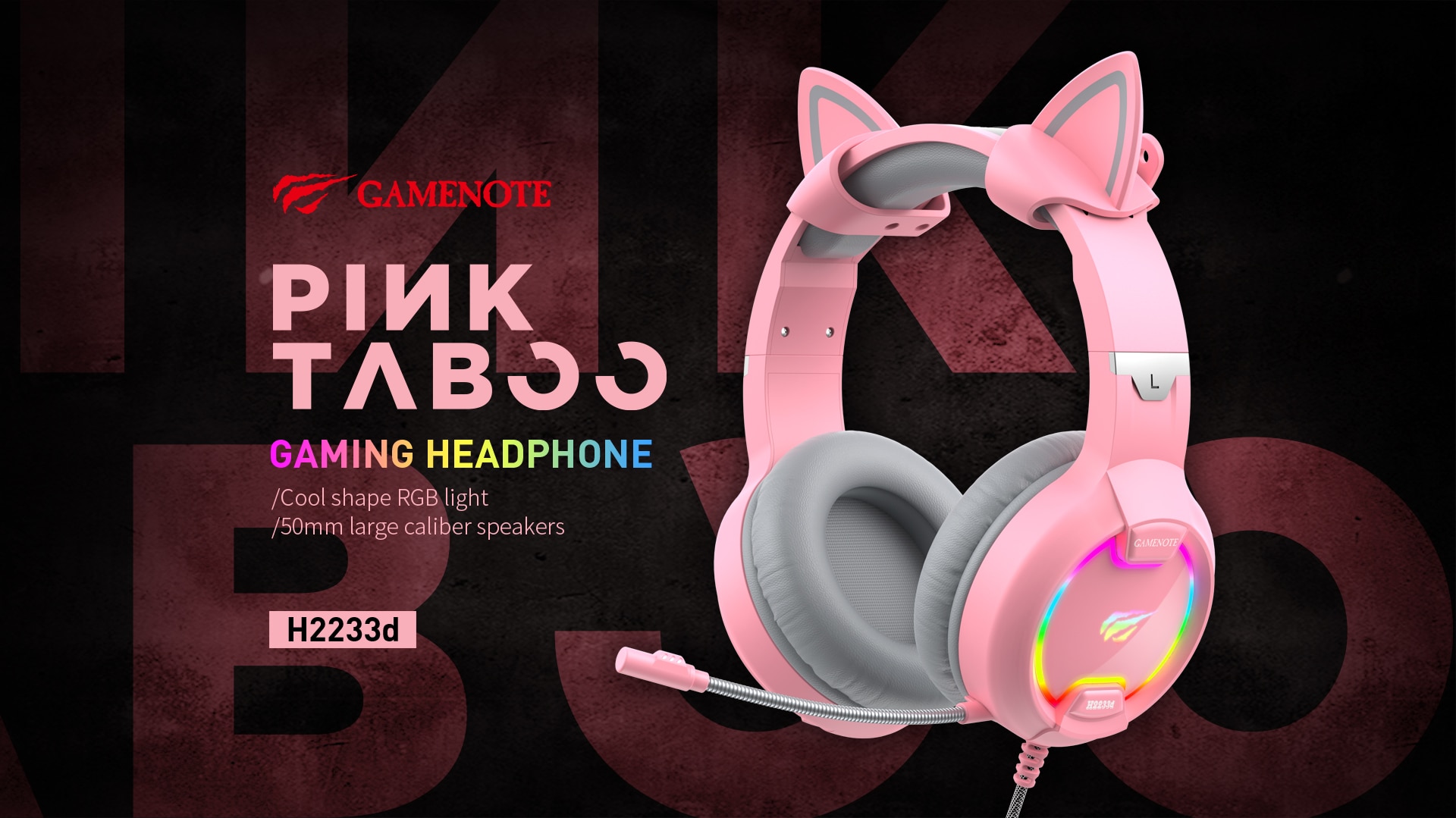 Casti gamer Havit GAMENOTE H2233d, RGB, roz |