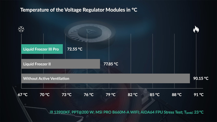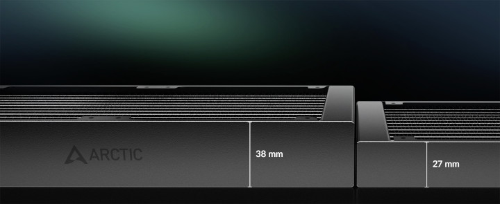 Radiatorul de 38 mm nu numai ca imbunatateste disiparea caldurii, dar retine si mai mult lichid decat radiatoarele conventionale de 27 mm. Acest lucru reduce acumularea de caldura si asigura o gestionare mai eficienta a varfurilor de temperatura.