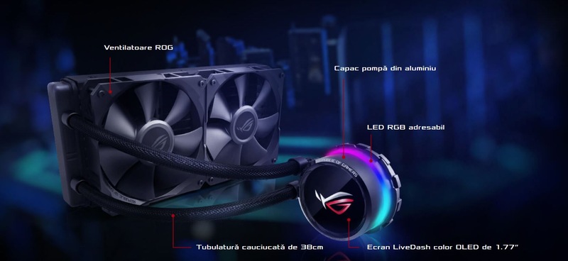 Cooler procesor Asus ROG Ryuo 120 all-in-one, liquid, color OLED, Aura Sync, 120mm |