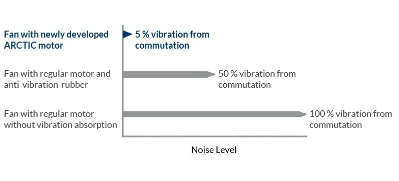LINISTE MAXIMA, VIBRATIE MINIMA Chiar si la viteze mici, sunetul de functionare al noului motor ARCTIC abia se poate auzi. Datorita magnetizarii sinusale, noul motor creeaza doar aproximativ 5% din vibratii din comutarea unui motor DC obisnuit fara filtru. In consecinta, nu este nevoie de distantieri din cauciuc datorita cuplului constant si neted al noului motor. | ![]() |