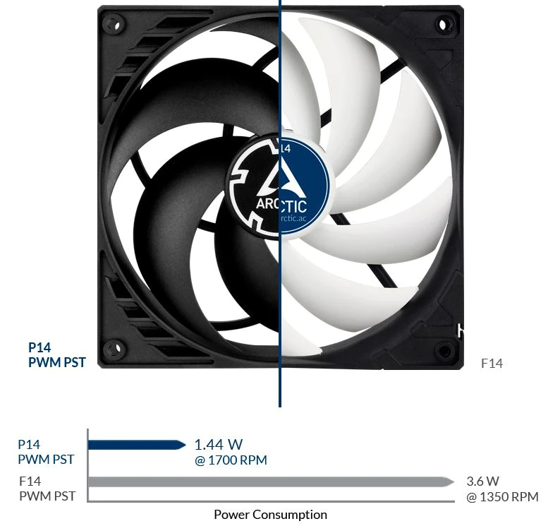 OPTIMIZAT PENTRU PRESIUNEA STATICA In timpul dezvoltarii noului P14 PWM PST, s-a pus un accent deosebit pe un flux de aer concentrat si, astfel, pe o presiune statica ridicata. Ventilatorul garanteaza o racire extrem de eficienta, chiar si cu o rezistenta crescuta a aerului. Prin urmare, P14 PWM PST este potrivit in special pentru utilizarea pe radiatoare si heatsink. | ![]() |