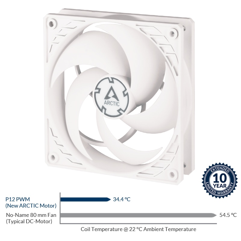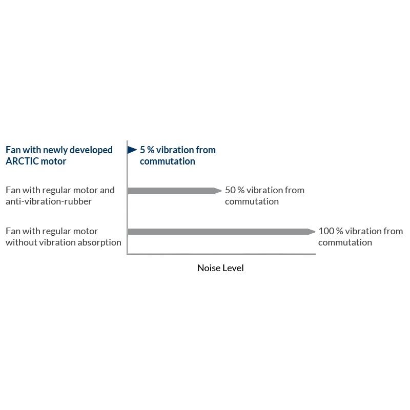 O temperatura a motorului mai mica cu 10 ° C dubleaza aproximativ durata de viata a ventilatorului. Noul motor ARCTIC are o durata de viata de patru ori mai mare prin temperatura sa scazuta a bobinei.