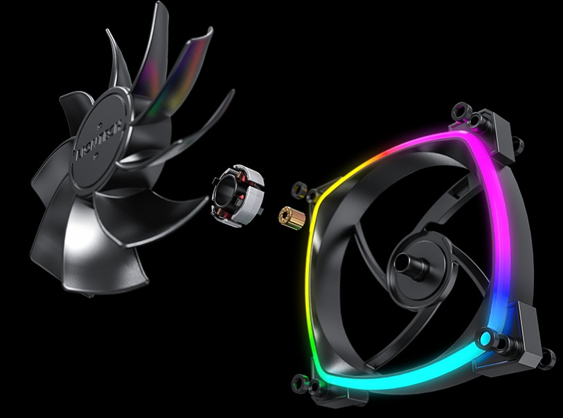 Lama de ventilator inversa specializata Ventilatoarele RGB fiind in centrul multor carcase moderne pentru PC, dar majoritatea ventilatoarelor in timp ce efectueaza admisia de aer fac ca iluminarea RGB sa fie obstructionata de cadru. RX120 utilizeaza un design invers al lamelor ventilatorului, astfel incat atunci cand este folosit ca ventilator de admisie, puteti vedea luminile RGB in toata gloria. Nu este nevoie de pierderi de performanta. |