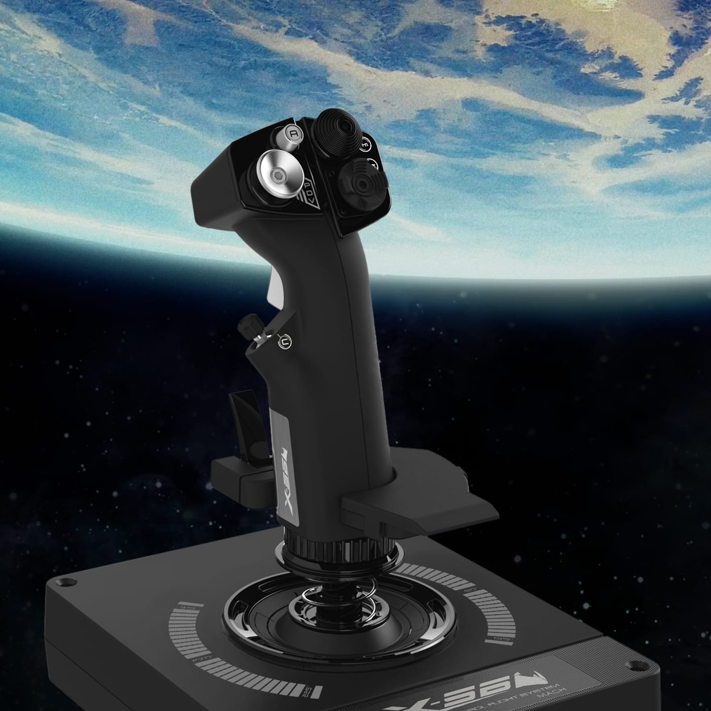 In jocurile moderne de simulare a navetei spatiale care utilizeaza o fizica mai dinamica a vehiculelor spatiale, controlul vehiculului este mai complex. De asemenea, este foarte diferit de simulatoarele de zbor traditionale. Sase grade de libertate - dati din cap, inclinati, evantai, inainte, inapoi, sus, jos, dreapta, stanga - care sunt toate necesare. X56 dispune de mini-comutatoare analogice unice, create special pe degetele mari, care ofera patru axe suplimentare de control si, de asemenea, dubleaza ca butoane.