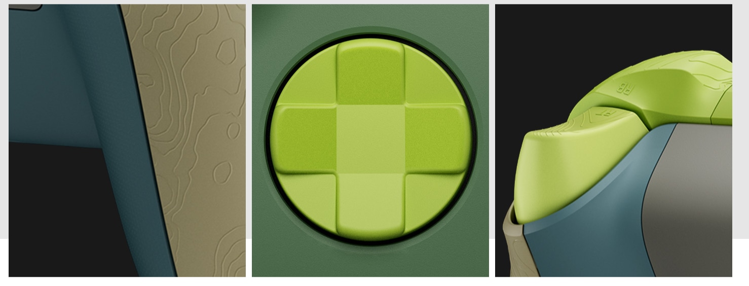 Proiectat cu gandul la planeta Amestecul de rasini PCR cu retusuri constand din piese colorate turnate anterior creeaza culori personalizate, in tonuri de pamant, cu variatii subtile, vartejuri si texturi care reprezinta o premiera pentru Xbox - oferind fiecarui controler Remix editie speciala propriul aspect si senzatie. |