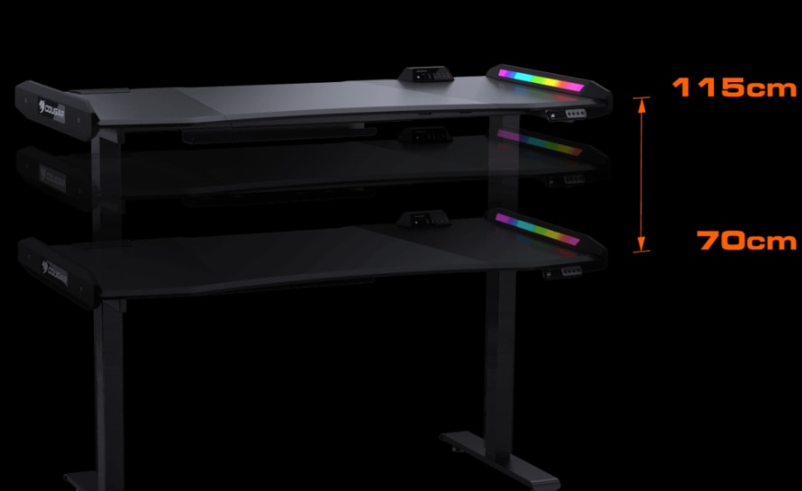Construit cu motoare duble, COUGAR E-MARS permite sarcina maxima de ridicare de 100 kg, cu un control usor al parghiei, puteti regla cu usurinta inaltimea biroului de la 70 cm la 115 cm. Motorul silentios, al carui volum este mai mic de 50dB, asigura functionarea silentioasa in camera in timpul jocurilor la miezul noptii.