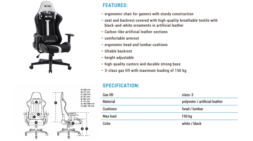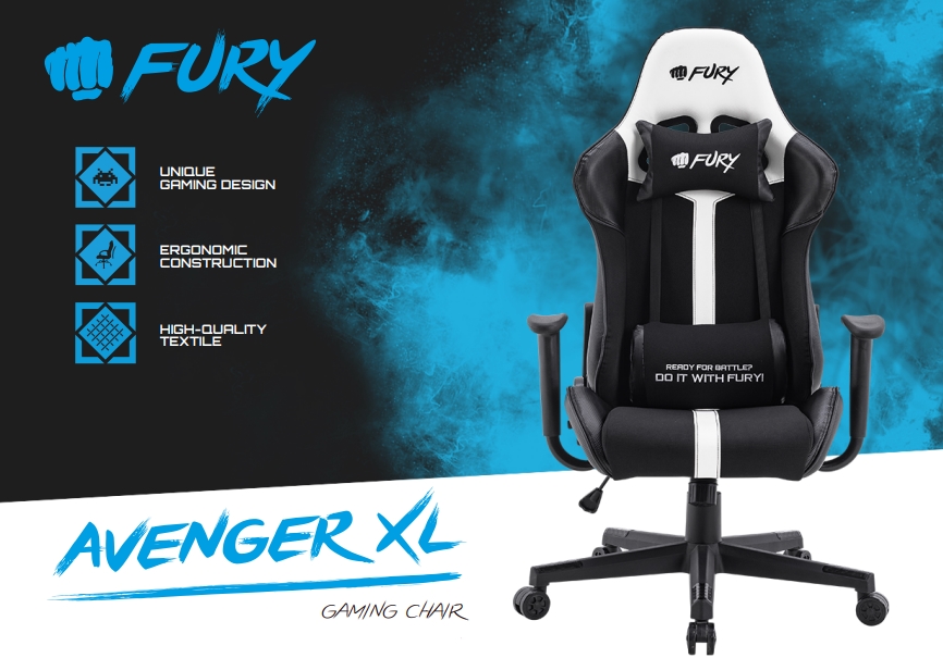 Descrierea produsului Scaun gaming Fury Avenger XL, reglabil (Negru/Alb)