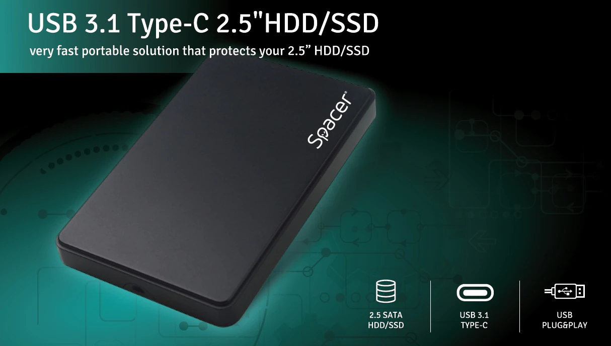 Descrierea produsului Rack Extern HDD/SSD Spacer SPR-TYPE-C-01 USB 3.1, 2.5"