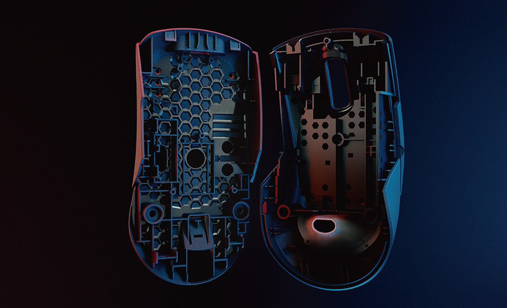 O structură internă de tip fagure oferă suport structural în vreme ce menține o greutate redusă, de numai 79 de grame.