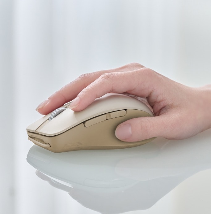 ASUS SmartO Mouse Silent Plus dispune de o rotita de defilare din aluminiu, durabila si tactila, impreuna cu doua butoane laterale. Un suport pentru degetul mare ofera un plus de confort si are ca rezultat o silueta eleganta. Finisajele savuroase Green Tea Latte sau Oat Milk ii confera o estetica ce se integreaza bine in orice casa sau birou.