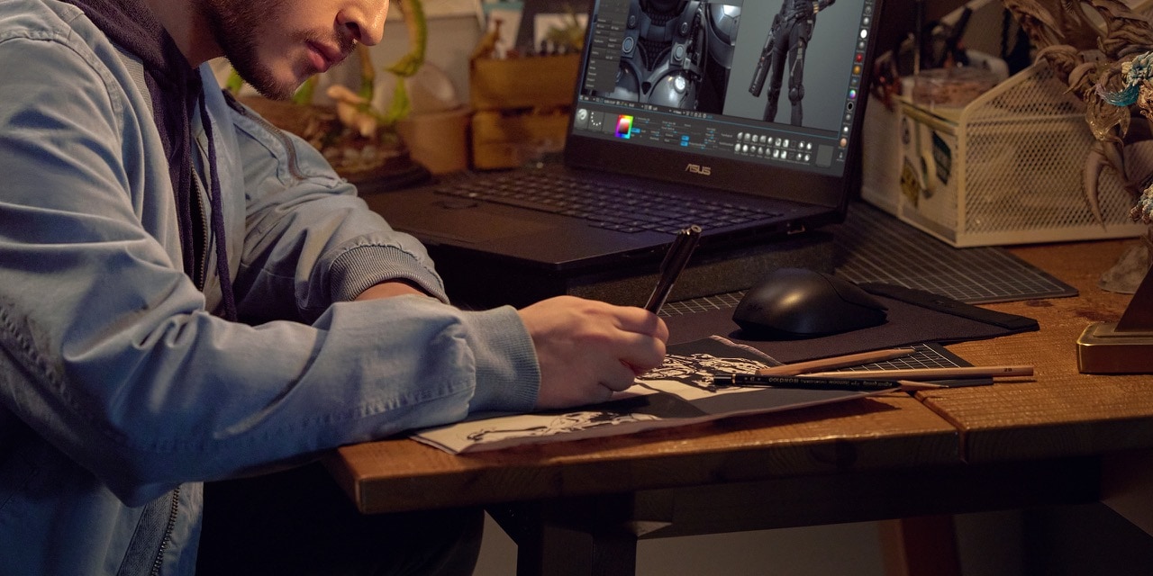 Noua caracteristica ASUS Dial face ca lucrul cu aplicatii creative sa fie cat mai natural si intuitiv posibil. Rotita de defilare laterala incorporata ofera un control precis si perfect cu ASUS Dial, pur si simplu rotiti si faceti clic pentru a modifica dimensiunea pensulei, saturatia si ajusta opacitatea stratului. De asemenea, poate fi folosit pentru a anula rapid actiunile anterioare pentru un flux de lucru mai fluid. ASUS Dial defileaza prin 100 de linii pe rotatie si dureaza de 5 ori mai mult decat derularile traditionale ale mouse-ului.