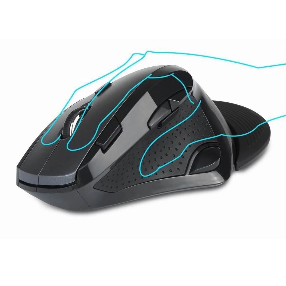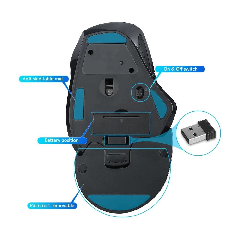 Mouse wireless Delux M910 negru, 800/1200/1600/2400 DPI, senzor optic, micro switch-uri cu durata de viata de 5 milioane click-uri, numar butoane: 9, design ergonomic, picioruse din teflon, palmrest detasabil, conector nanoUSB placat cu aur, dimensiuni: 157.4x91.4x56.6mm, USB