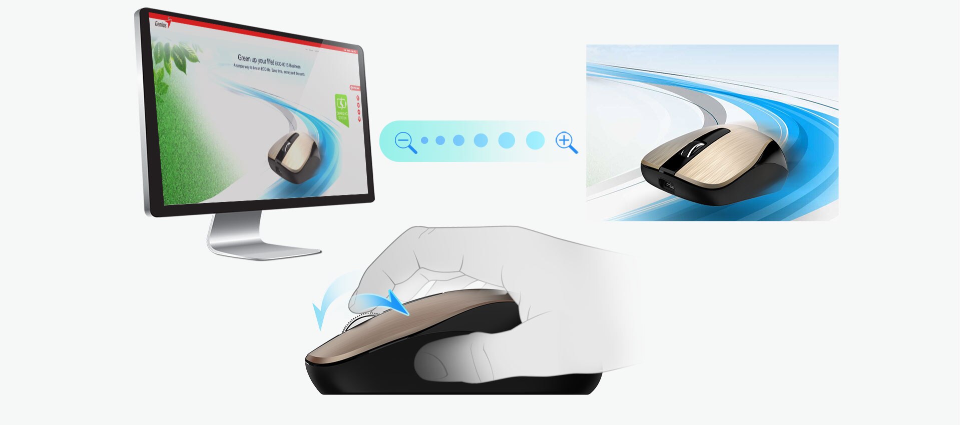 Descrierea produsului Mouse reincarcabil Genius, ECO-8015, 800/1600 DPI, Argintiu