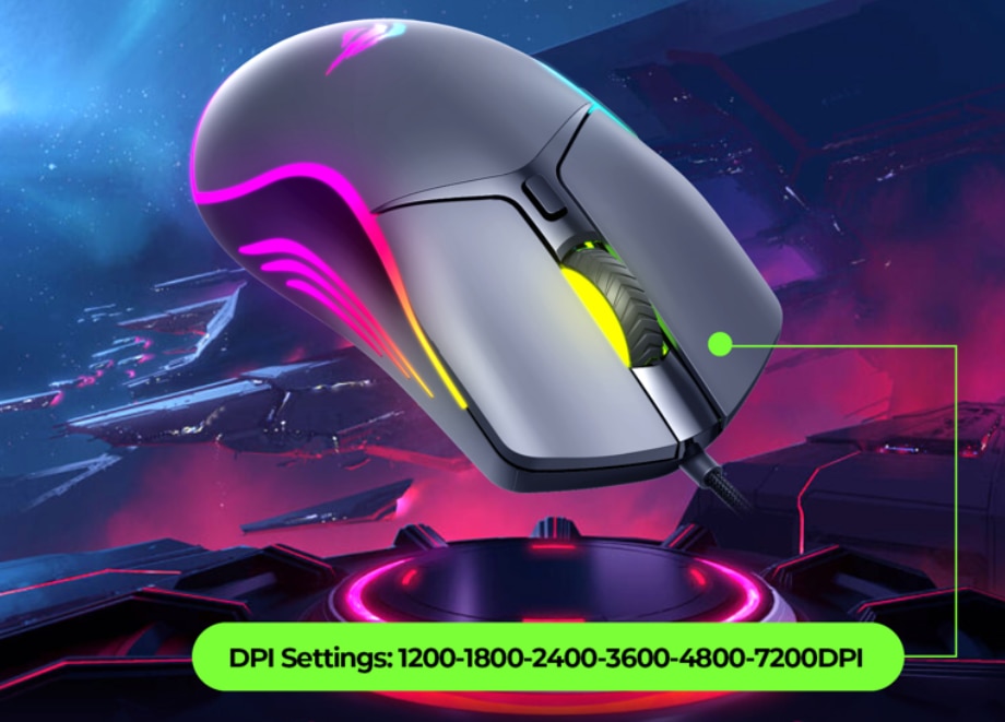 Descrierea produsului Mouse gaming HAVIT MS1029, RGB, 7200 dpi, 6 butoane, USB, Negru