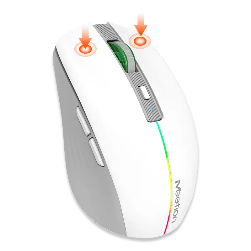 Descrierea produsului Mouse Meetion BTM002, Wireless 2.4 Ghz, Bluetooth, USB (Alb/Gri)