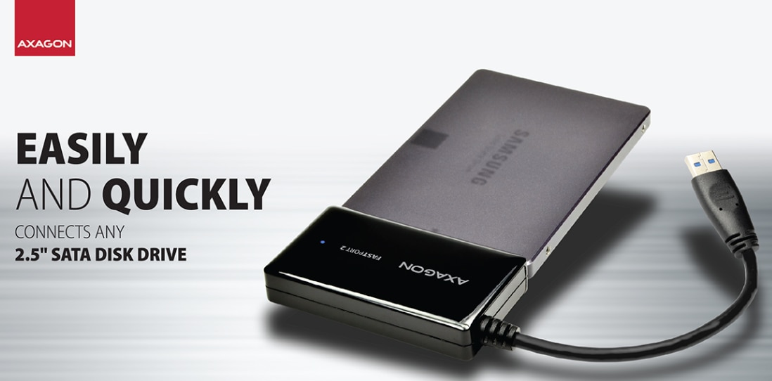 Descrierea produsului Adaptor Axagon ADSA-FP2A, USB 3.2 Gen 1, SATA 3.0, pentru HDD 2.5 inch, USB-A, Negru