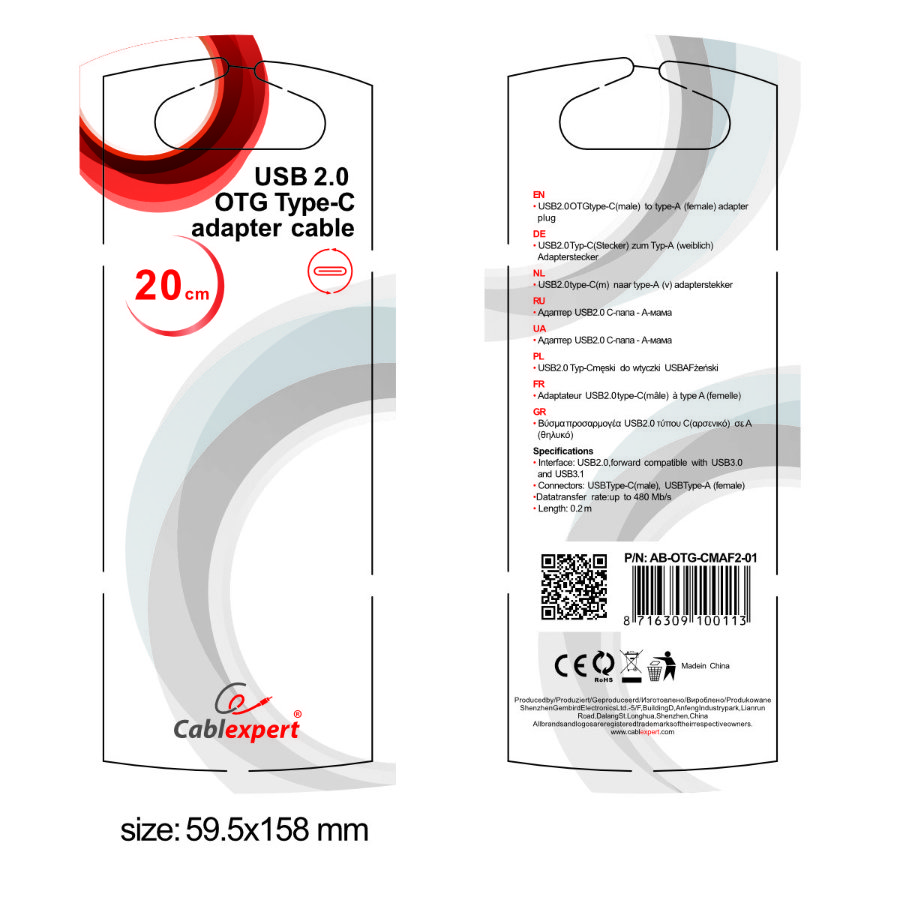 Descrierea produsului Cablu adaptor Gembird AB-OTG-CMAF2-01, USB 2.0 - USB-C, 20 cm