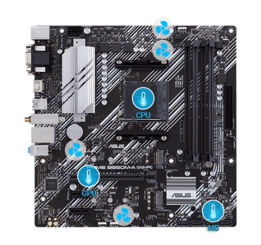 Seria Prime B550 este dotată cu opțiuni extinse de control al răcirii, care pot fi configurate prin intermediul software-ului Fan Xpert 2+ sau prin UEFI BIOS.