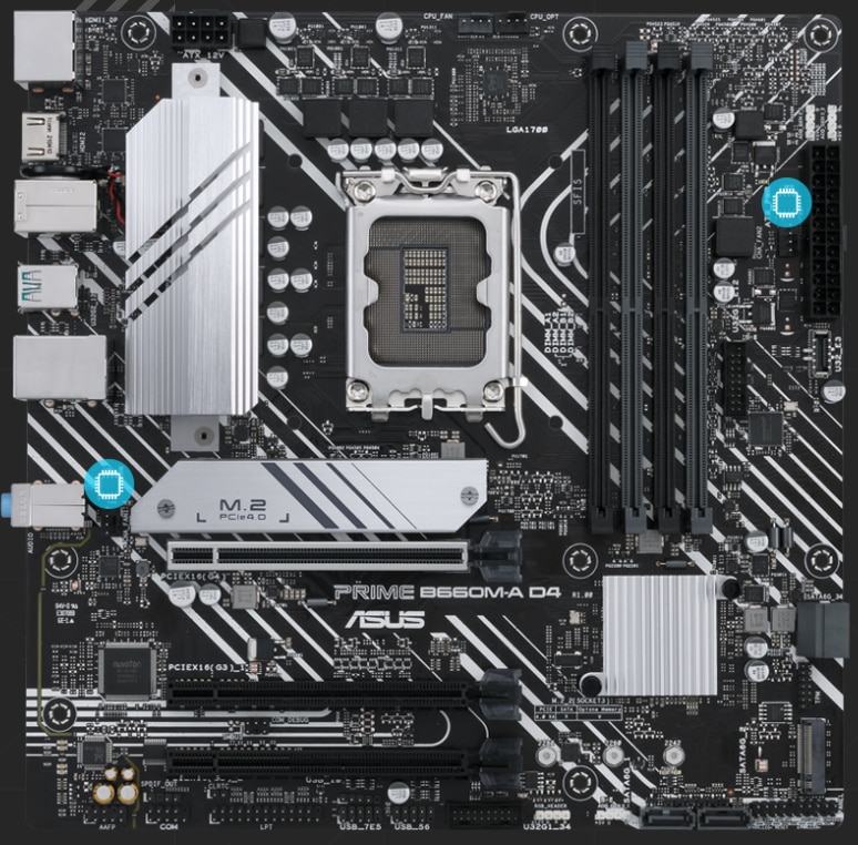 Puterea stabila este esentiala pentru a extrage pana la ultima farama de performanta din procesoarele Intel din a 12-a generatie. PRIME B660M-A D4 este conceput pentru a raspunde cerintelor acestor procesoare cu numar mare de nuclee.