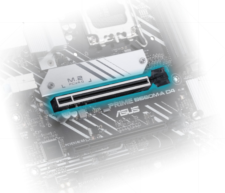 Prime B660M-K D4 ofera un total de doua sloturi M.2 care accepta viteze de transfer de date de pana la 64 Gbps prin PCIe® 4.0, permitand o pornire mai rapida si timpi de incarcare a aplicatiilor cu unitati de sistem de operare sau aplicatii.