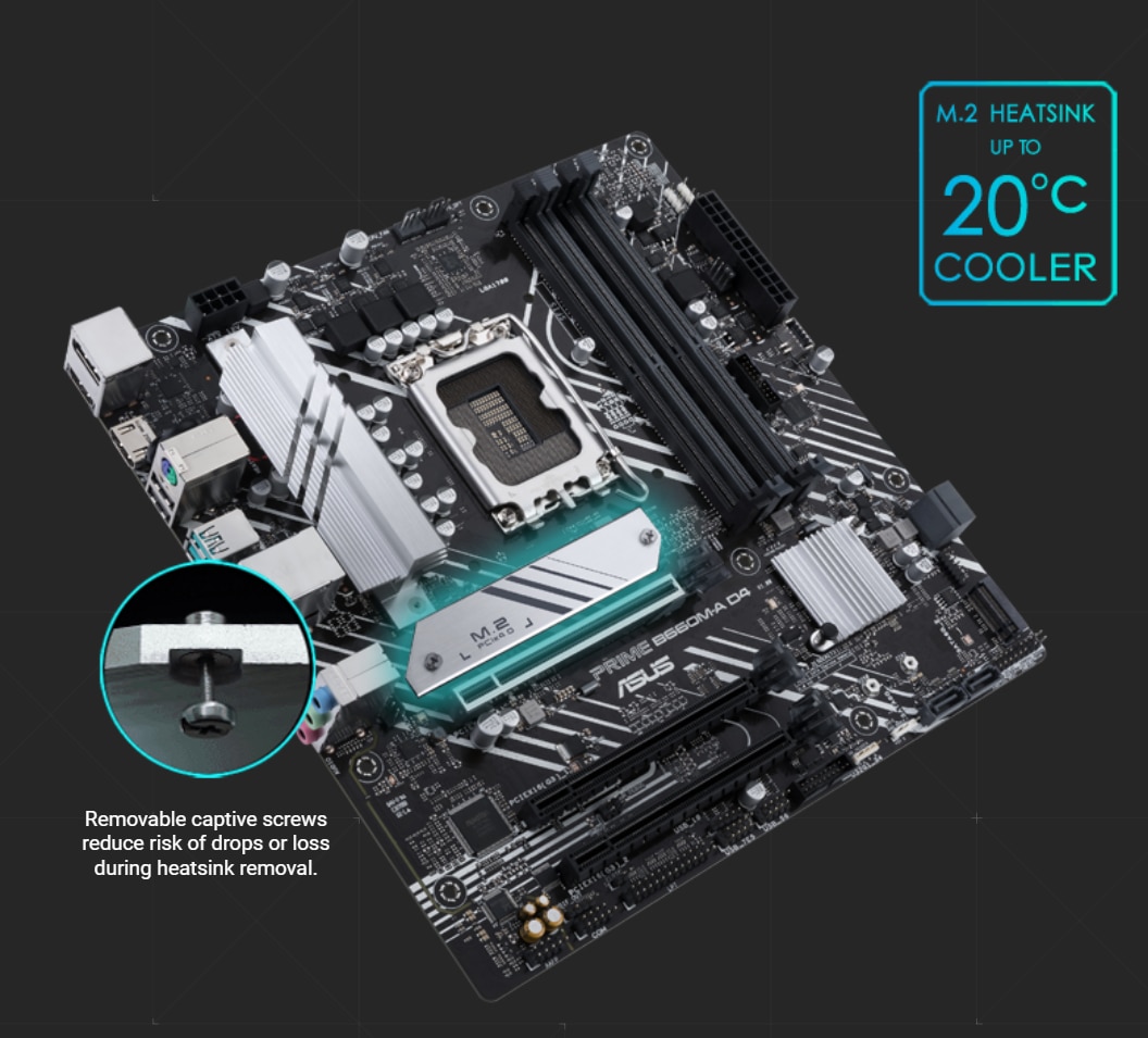 Seria Prime B660 este proiectata cu mai multe radiatoare incorporate si o serie de conectori hibrizi pentru ventilatoare pentru a va asigura ca platforma dvs. ramane rece si stabila in conditii de incarcare intensa.