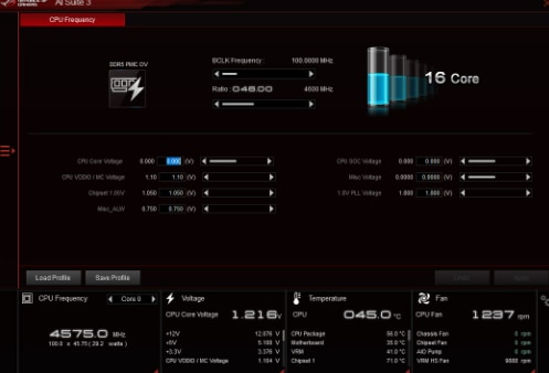 AI OVERCLOCKING Reglarea este acum mai rapida si mai inteligenta ca niciodata. ASUS AI Overclocking profileaza CPU si sistemul de racire pentru a prezice configuratia optima si pentru a impinge sistemul la limitele sale. Valorile prezise pot fi angajate automat sau pot fi folosite ca baza de lansare pentru experimente ulterioare. |